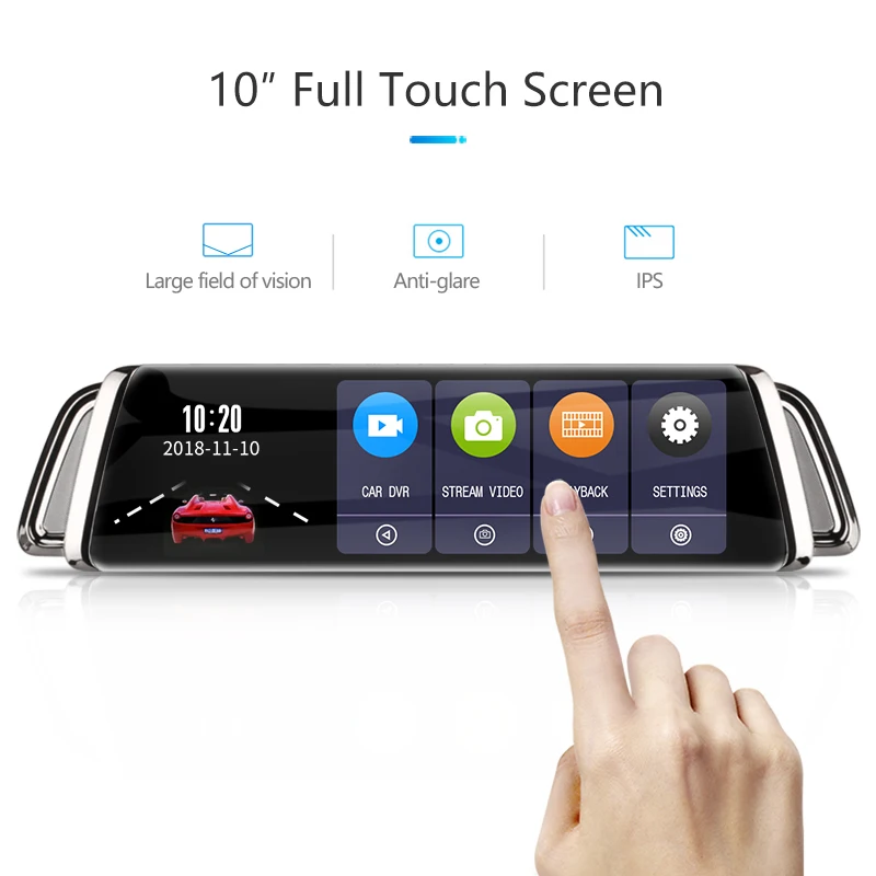 Jansite 10" Touch Screen Car DVR Dash camera Dual Lens Front/Rear camera 1080P screen Auto Camera V