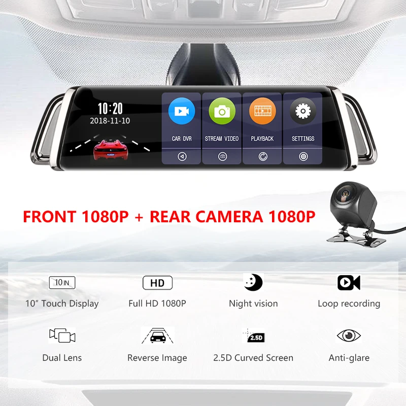 BEST Jansite 10" Touch Screen Car DVR Dash camera Dual Lens Front/Rear camera 1080P screen Auto Camera V
