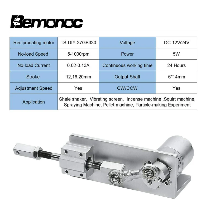 Bemonoc DIY Design Reciprocating Cycle Linear Actuator DC Gear Motor 12V 24 V + Power Supply + Spee