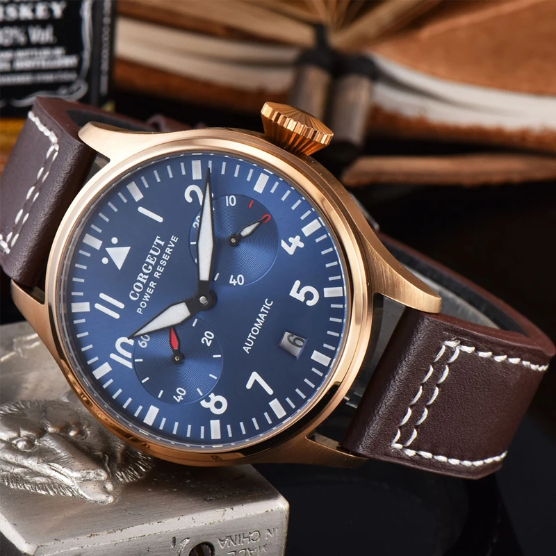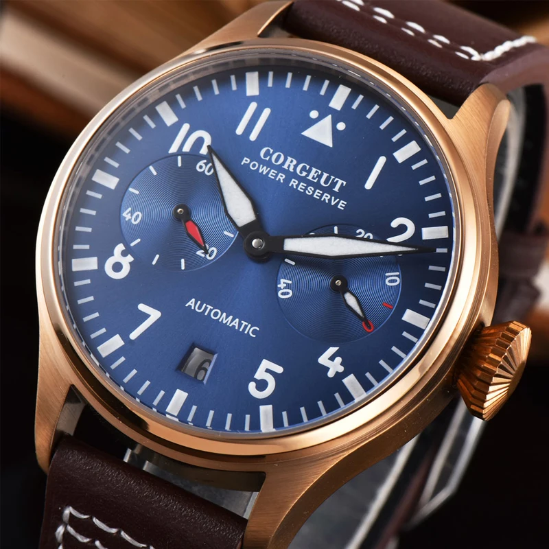 REVIEW TOP SELLER 42MMCorgeut brand Clocks Automatic mens Blue Mechanical Watches Luxury Sport Copper power reserve l