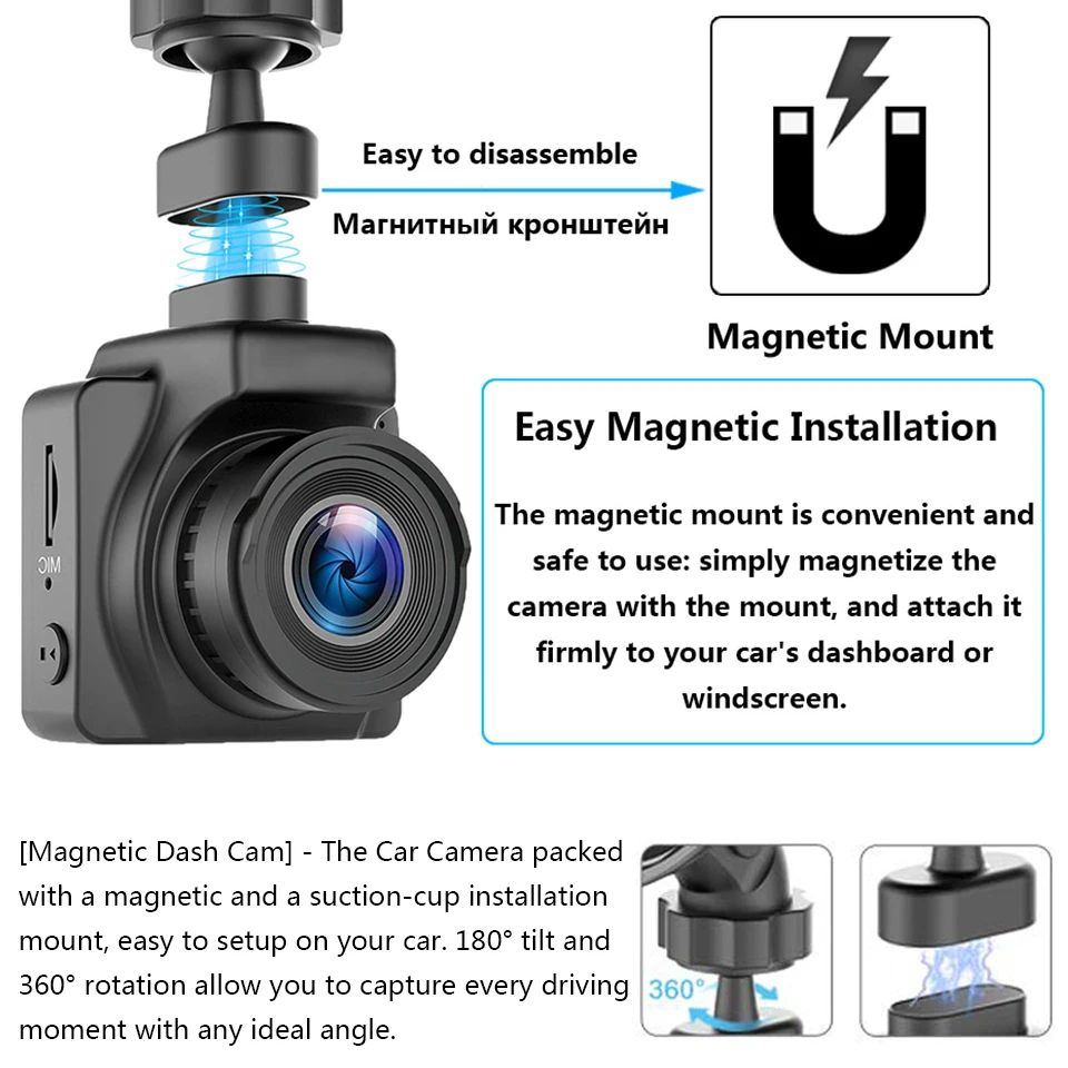 RDVR Magnetic Dashboard Recording Camera 1.5" Mini DVR Car Camera Full HD 1080P Wide Angle Dash Cam