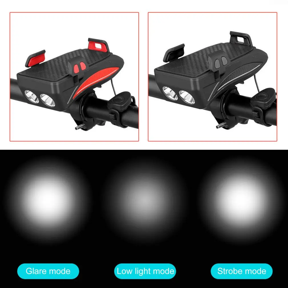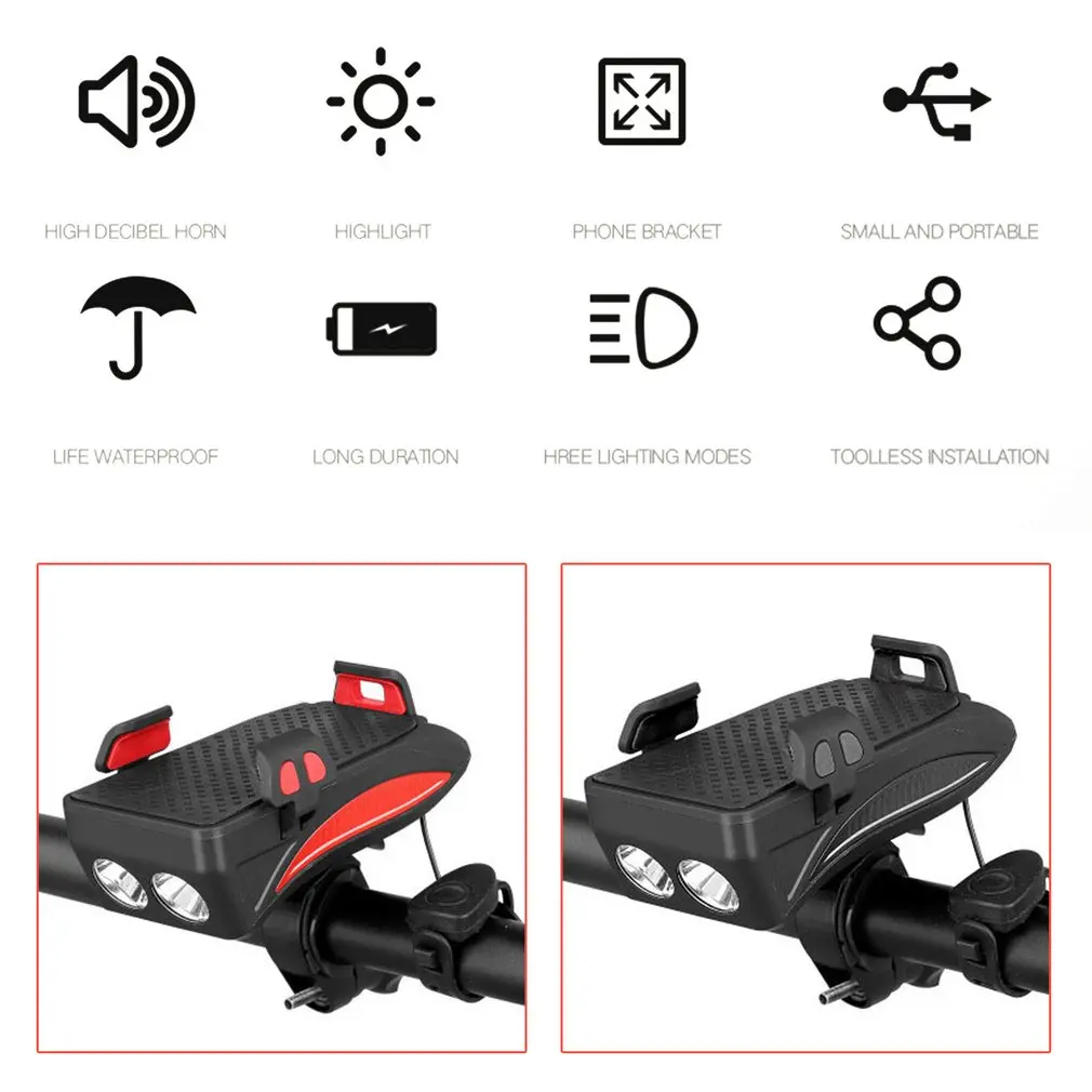 3 in 1Waterproof USB Rechargeable Cycling Power Bank Light Headlight Bicycle Phone Holder Bike Horn