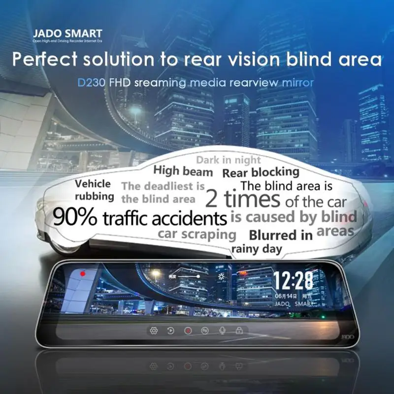 Best Seller JADO D230 Stream Media Car Rear View Mirror DVR Camera ADAS Dash Cam 9.35" IPS Touch Screen Full HD