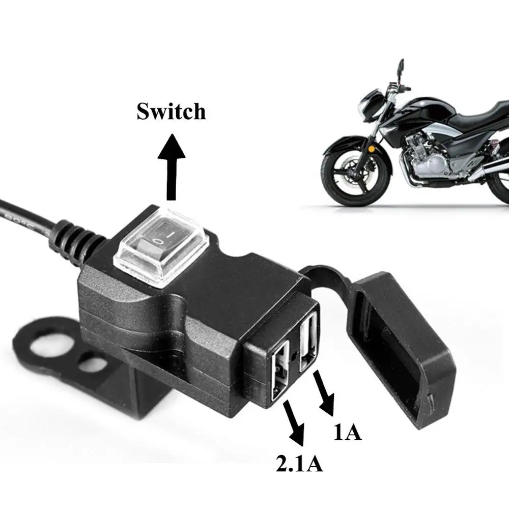 New 12V/24V Waterproof Motorbike Motorcycle Handlebar Charger Adapter Dual USB Port 5V 1A/2.1A Powe