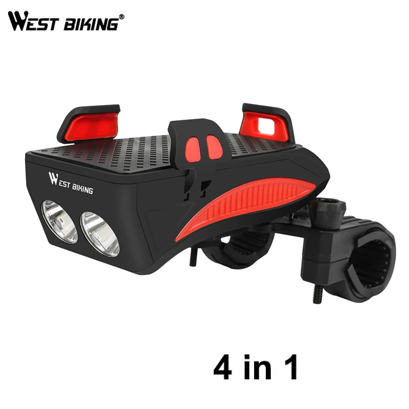 Best Quality WEST BIKING Bike Light 2000mAh/4000mAh Battery Power Bank Phone Holder 130DB Speaker Bell 4 in 1 MT