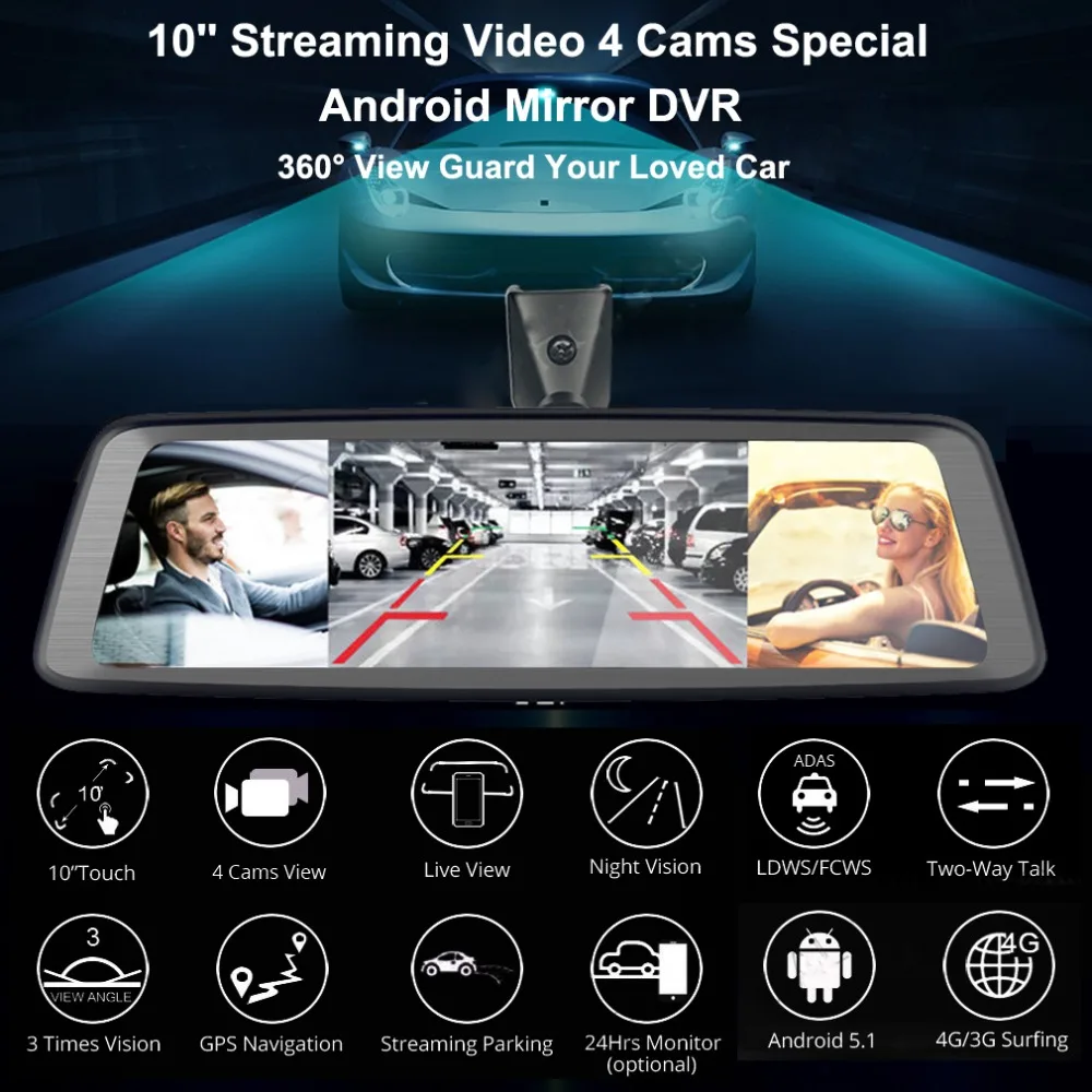 zuczug 360-degree panoramic 4CH Cameras lens 10" Touch Android Navi car camera gps rear view mirror