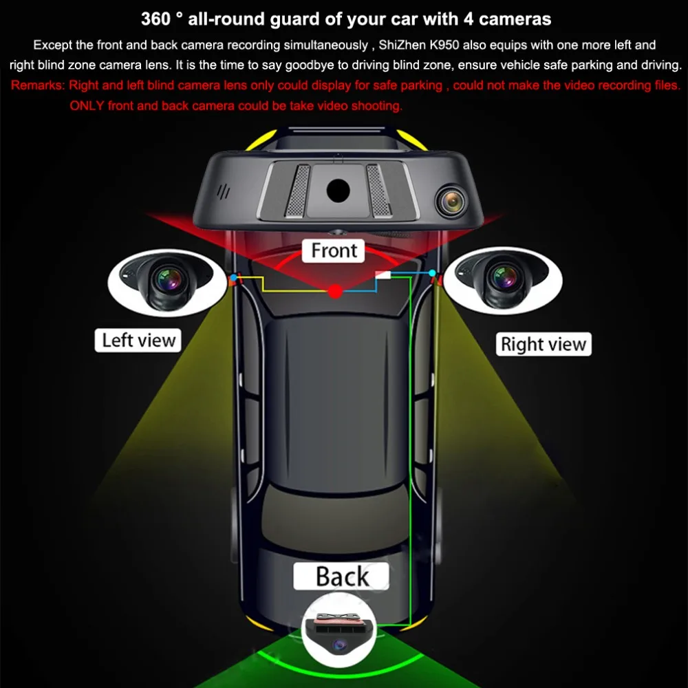 ORIGINAL zuczug 360-degree panoramic 4CH Cameras lens 10" Touch Android Navi car camera gps rear view mirror